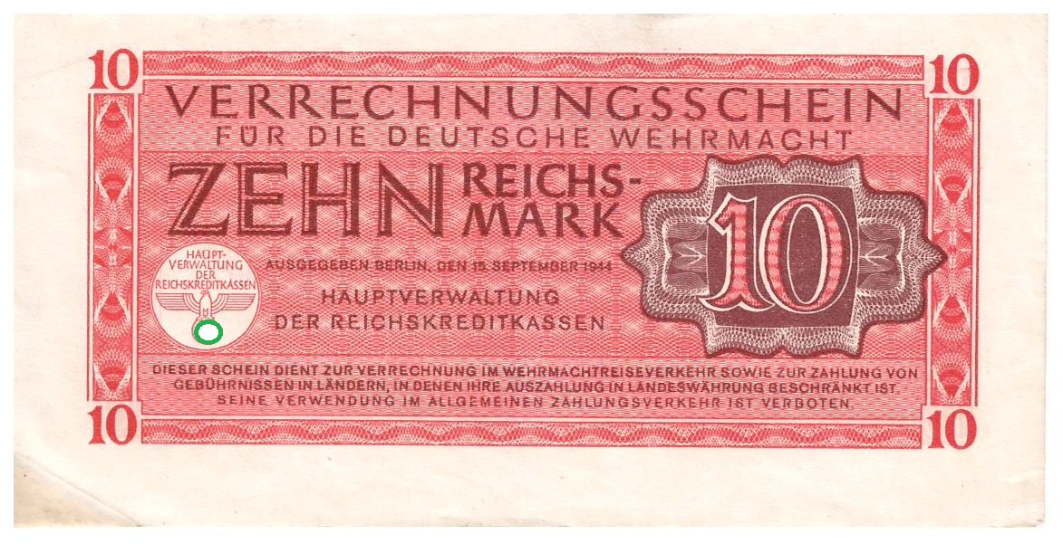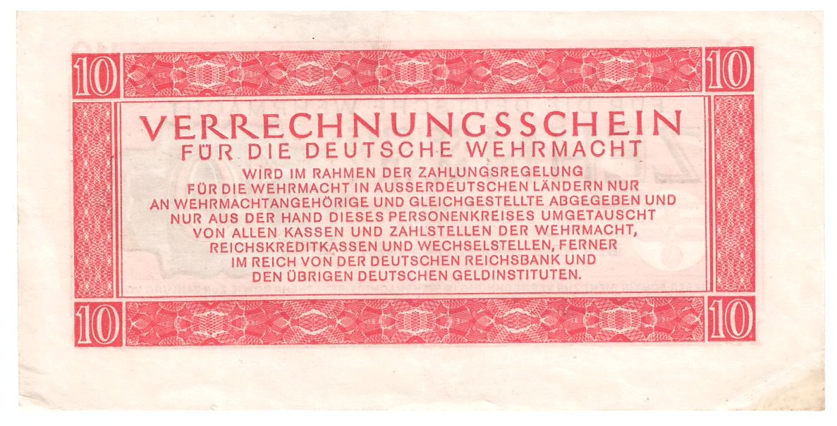 Weiterführende Links zu "10 Reichsmark 1942-1944 Ros. 513 Verrechnungsschein 10 RM Dt. Wehrmacht 15. Sept.1944"