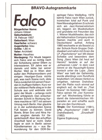 Weiterführende Links zu "Falco Bravo Orginal Autogramm"