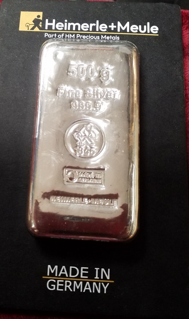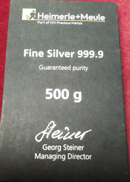 500 Gramm Silber Barren Heimerle+Meule Feinsilber 999,9