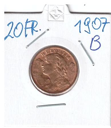 20 Franken 1907 B Vreneli Schweiz Gold