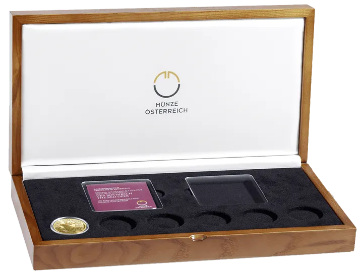 Im Zentrum des Deckels befindet sich eine aufwendig gestaltete Metallapplikation, entworfen von den erfahrenen Graveuren der Prägestätte und direkt in der hauseigenen Manufaktur gefertigt. Dieses Detail verleiht der Kassette eine besondere Wertigkeit und macht sie zu einem dekorativen Blickfang, der die Schönheit der Tiermotive stilvoll aufnimmt.Sammelkassette ohne Münze.