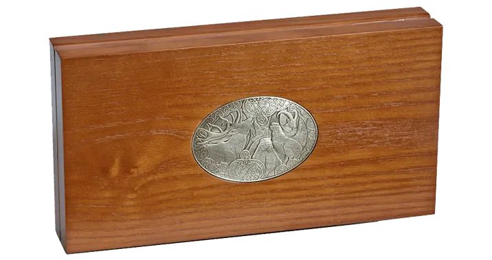 Nicht nur im Wald machen diese Wildtiere eine beeindruckende Figur. Auch in der hochwertigen, massiven Sammelkassette aus edlem Holz kommen die Münzen perfekt zur Geltung.